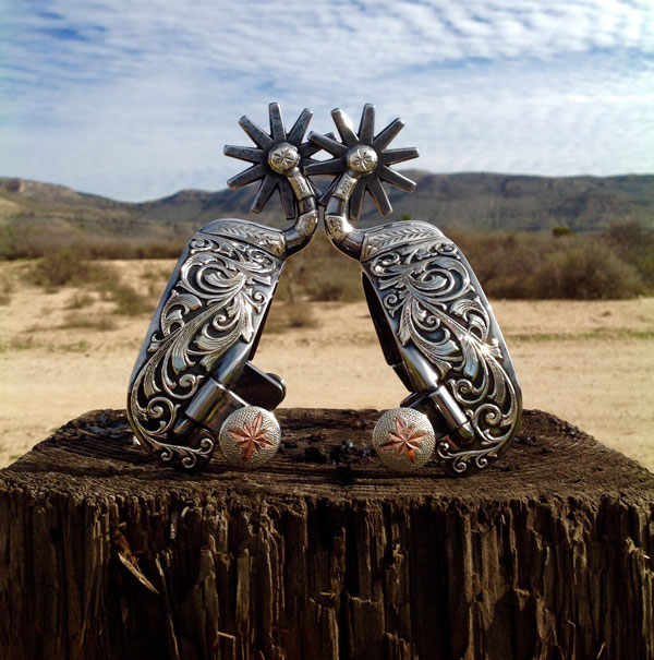 77.–Boot-Shank-Spurs,-fabricated-from-4130-steel,-overlayed-with-sterling-and-14K-gold-and-highlighted-with-154-bright-cut-diamonds-totaling-5-carats,-$45,000–Stewart-Williamson