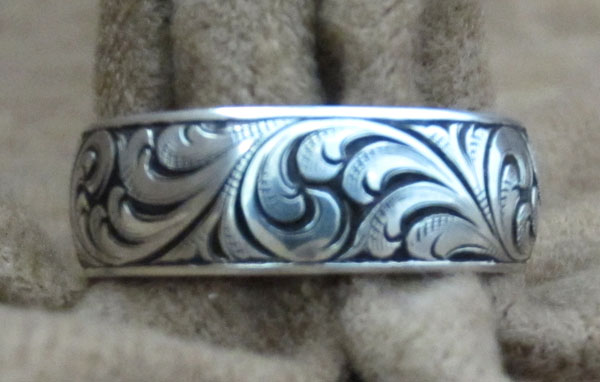 78.-Wedding-Band,-hand-engraved-sterling-silver,-size-11,-$750–Stewart-Williamson.