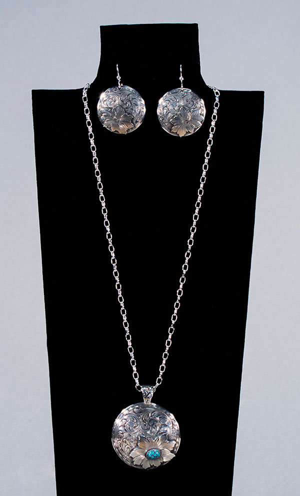 64.Concho-Pendant-and-Earrings-Set-sterling-silver-and-turquoise-cabochon-gemstones-Rex-Crawford by Mo88_site | Mar 18, 2015