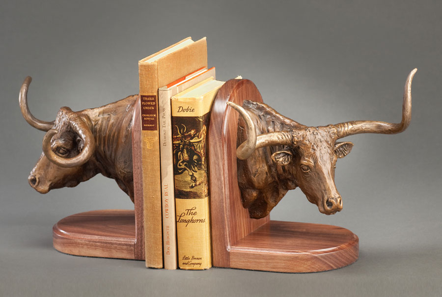 11.Longhorn-Book-Ends-bronze-Rick-McCumber