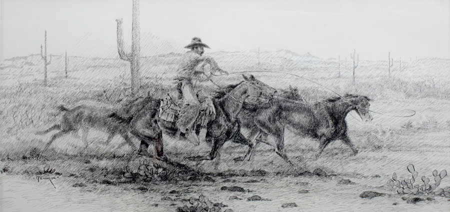 91.-Cy-Remington-and-the-Tortalita-Mustangs,-pen-&-ink,-11.25-x-23.25”,-$2900–Mike-Capron by Mo88_site | Apr 13, 2015