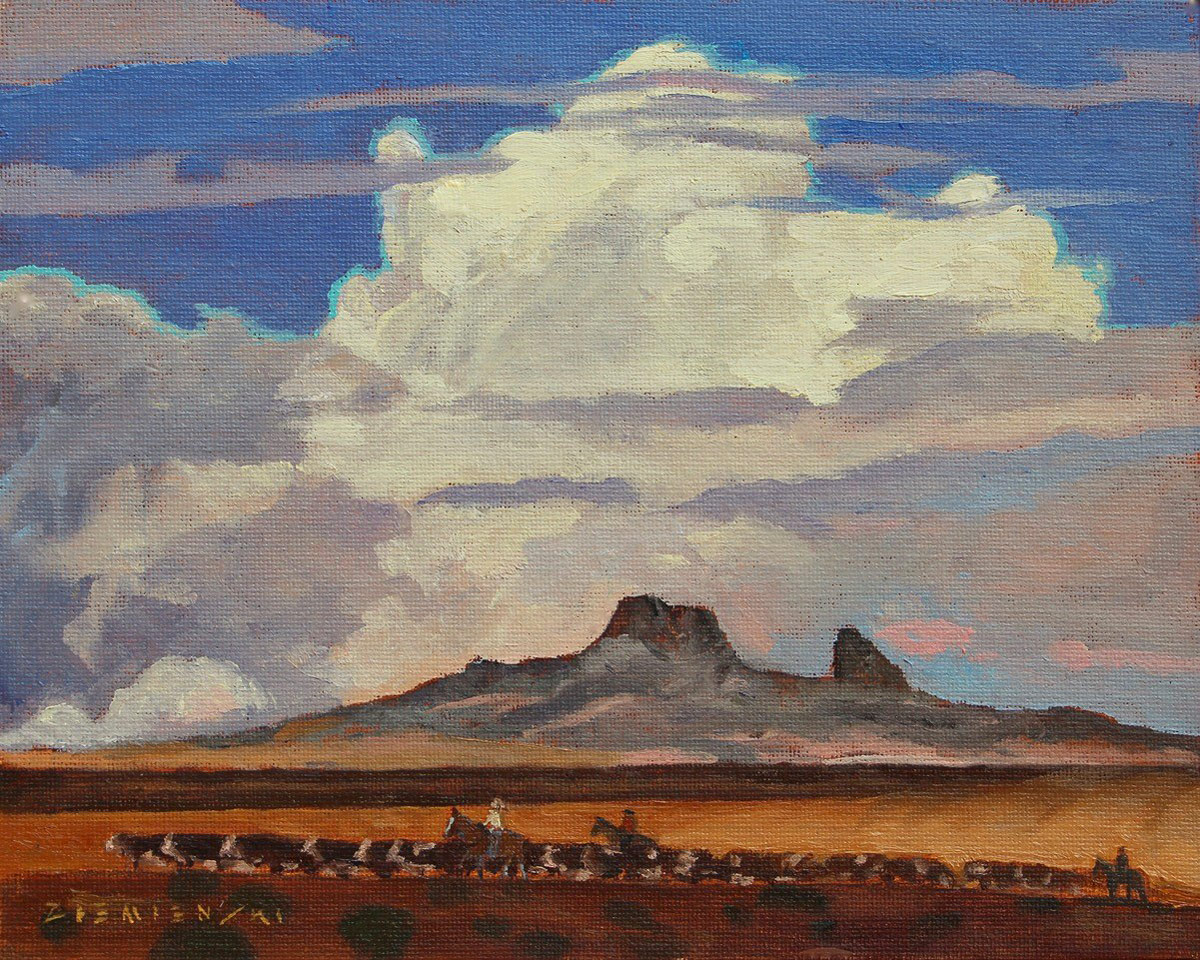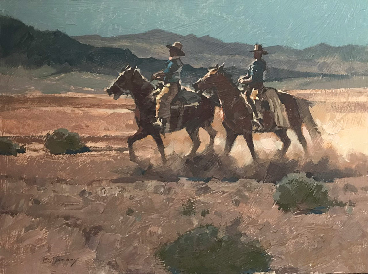 ART-74 Dennis Ziemienski, On the Move, oil on canvas board