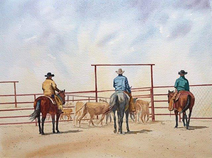 20-Valerie-Coe-Bringing-in-the-Beeves-watercolor-11×14-975