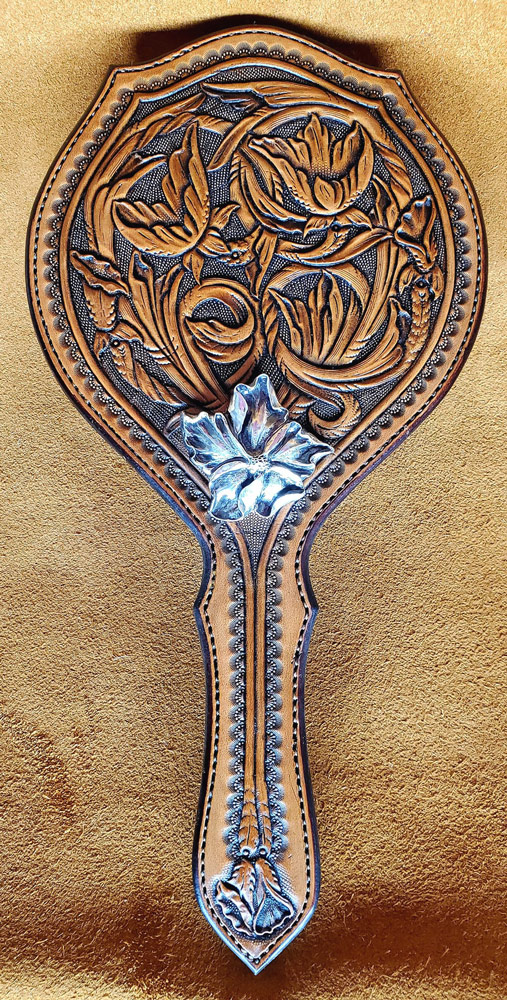 53-Douglas-Krause-Hand-Mirror-full-flower-carved-leather